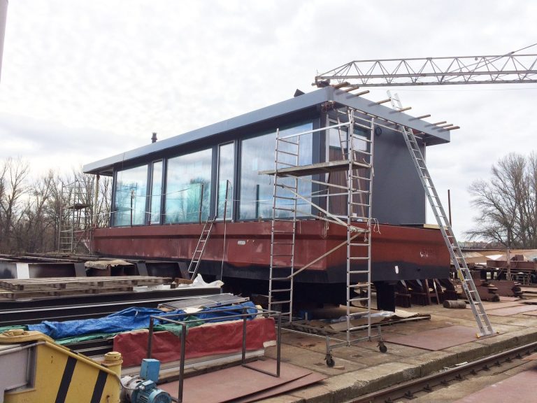 Das Boot wurde nach meiner Planung im Jahr 2020 in einer Werft an der Elbe fertiggestellt und nach einer rund 1.000 km langen Jungfernfahrt innerhalb von 10 Tagen in den Heimathafen, die Marina Köln Sürth, überführt. Dort dient es als Vorführobjekt und Prototyp für zukünftige Hausbootplanungen.